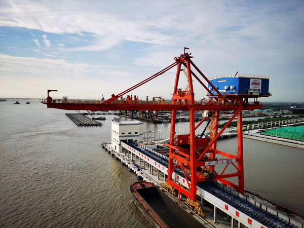 由杭州華新機(jī)電工程有限公司總包的一臺(tái)設(shè)計(jì)生產(chǎn)率為750t/h的螺旋卸船機(jī)總裝完成進(jìn)入調(diào)試階段。該設(shè)備用于國家能源集團(tuán)宿遷發(fā)電有限公司二期擴(kuò)建2×660MW超超臨界二次再熱機(jī)組工程。本工程位于宿遷市南偏東距市中心18km處的京杭大運(yùn)河南,二期新建碼頭共有4個(gè)泊位,配置兩臺(tái)螺旋式卸船機(jī)、兩臺(tái)16t清艙用港口門座機(jī)。
